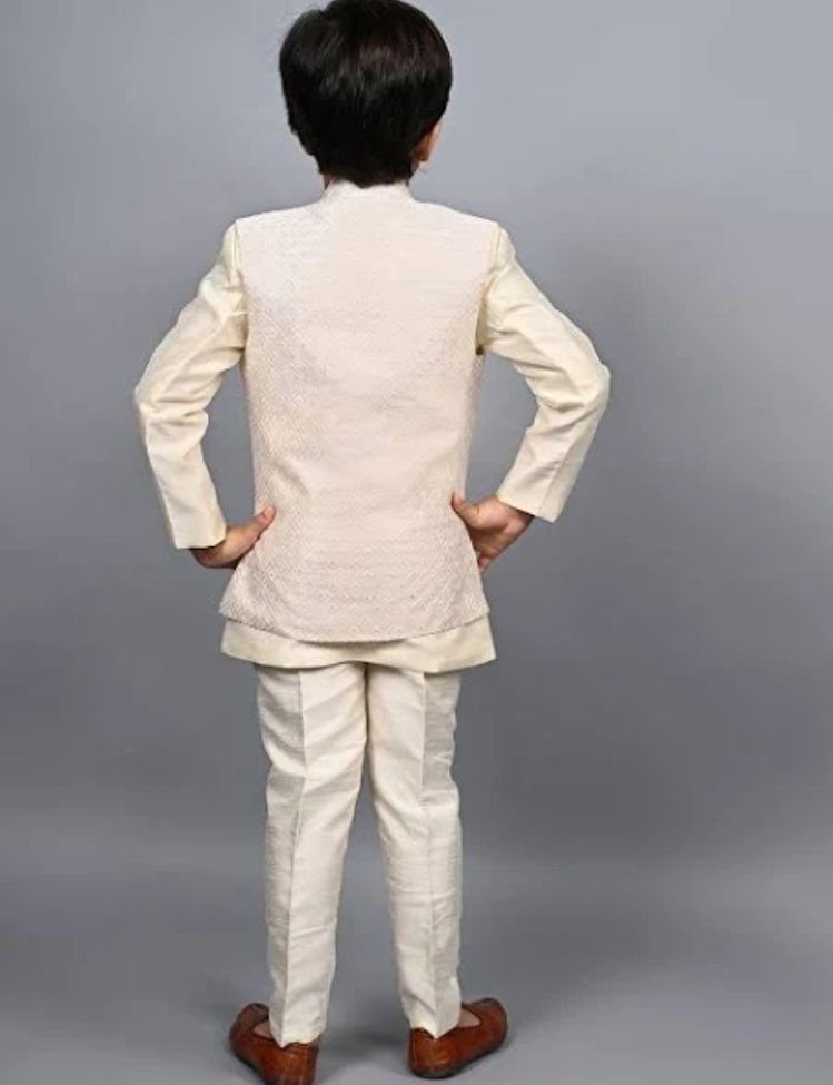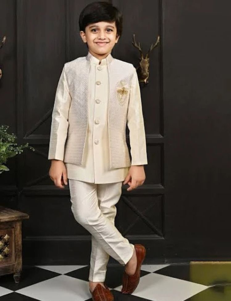 Elegant and regal, boys’ sherwanis are perfect for weddings and festive occasions, featuring rich fabrics and traditional embroidery.